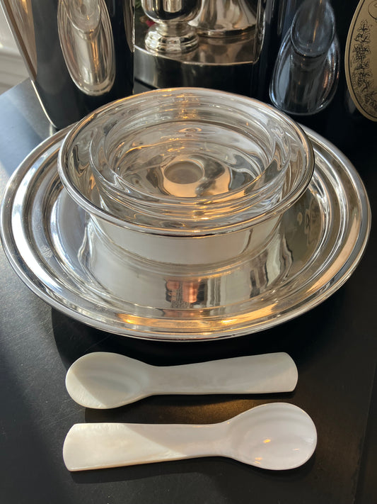 Hôtel Silver - Vintage Caviar Server with Mother of Pearl Spoons