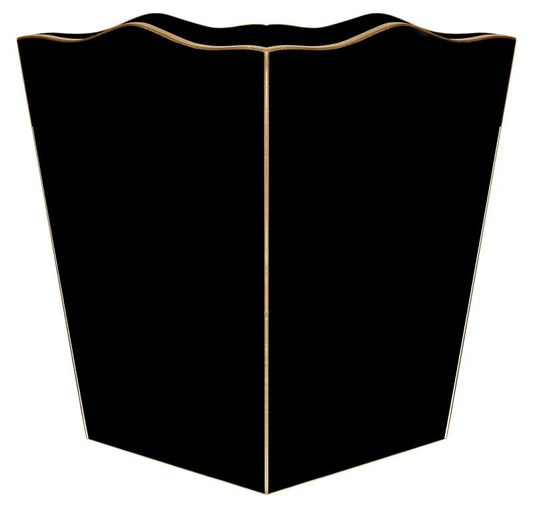 Black Wooden Waste Bin, Gold Scalloped Trim
