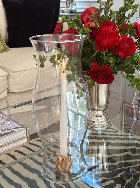 Golden Artichoke Candle Stick Holders/Grand Hurricane Tall - Set of 2