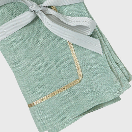 Gold Trim Linen Dinner Napkins, Sea Foam, Joanna Buchanan - Set of 2