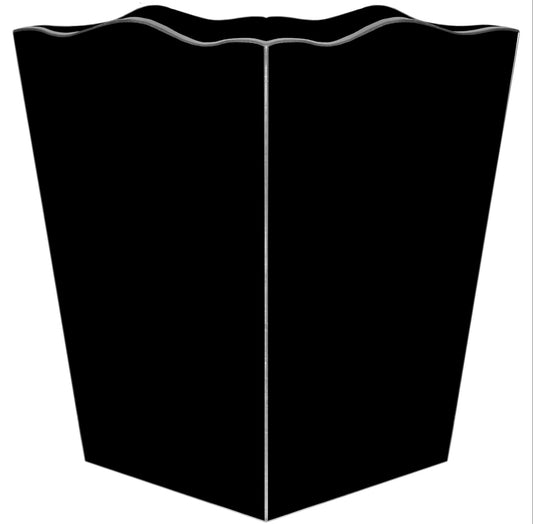 Black Wooden Waste Bin, Silver Scalloped Trim