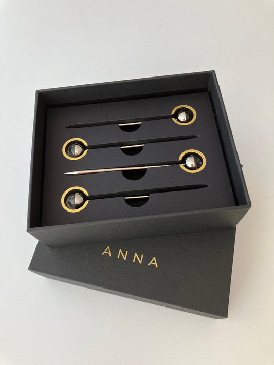 Anna New York Hospitality Cocktail Picks, Crystal & Silver, Set of 4