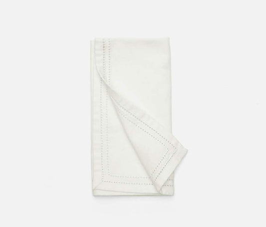 Ivory Double Eyelet Napkin Cotton Canvas 20 x 20, Blue Pheasant - Set of 4