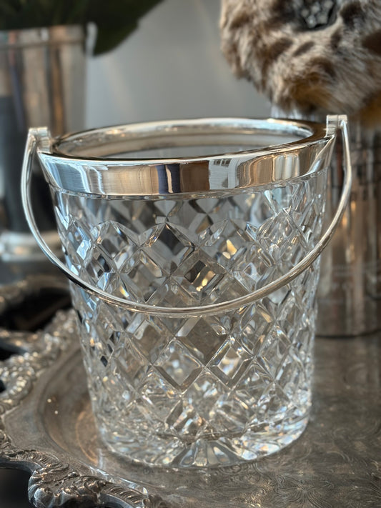 Hôtel Silver - Vintage Cut Glass Ice Bucket With Silver Rim & Handle