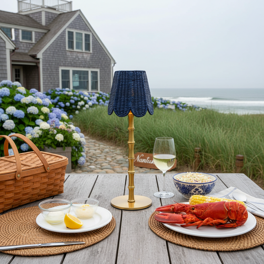 Brass and Wicker Cordless French Bistro Lamp