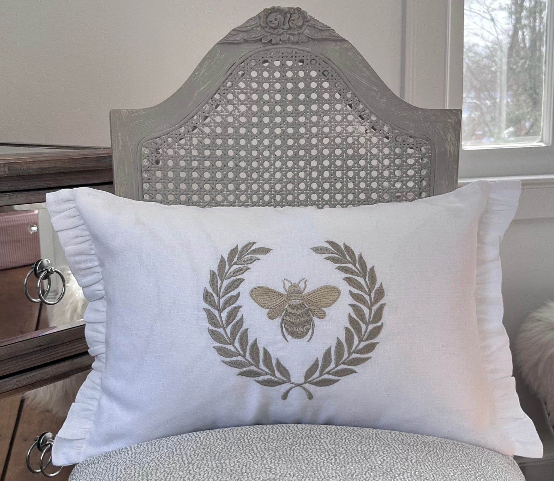 French Bee Décor Pillow - White Linen