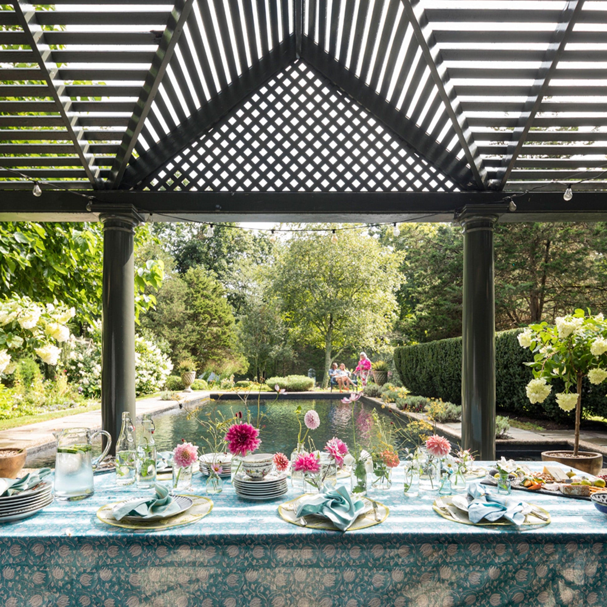 Gold Trim Dinner Napkins, Duck Egg Blue, Joanna Buchanan - Set of 2