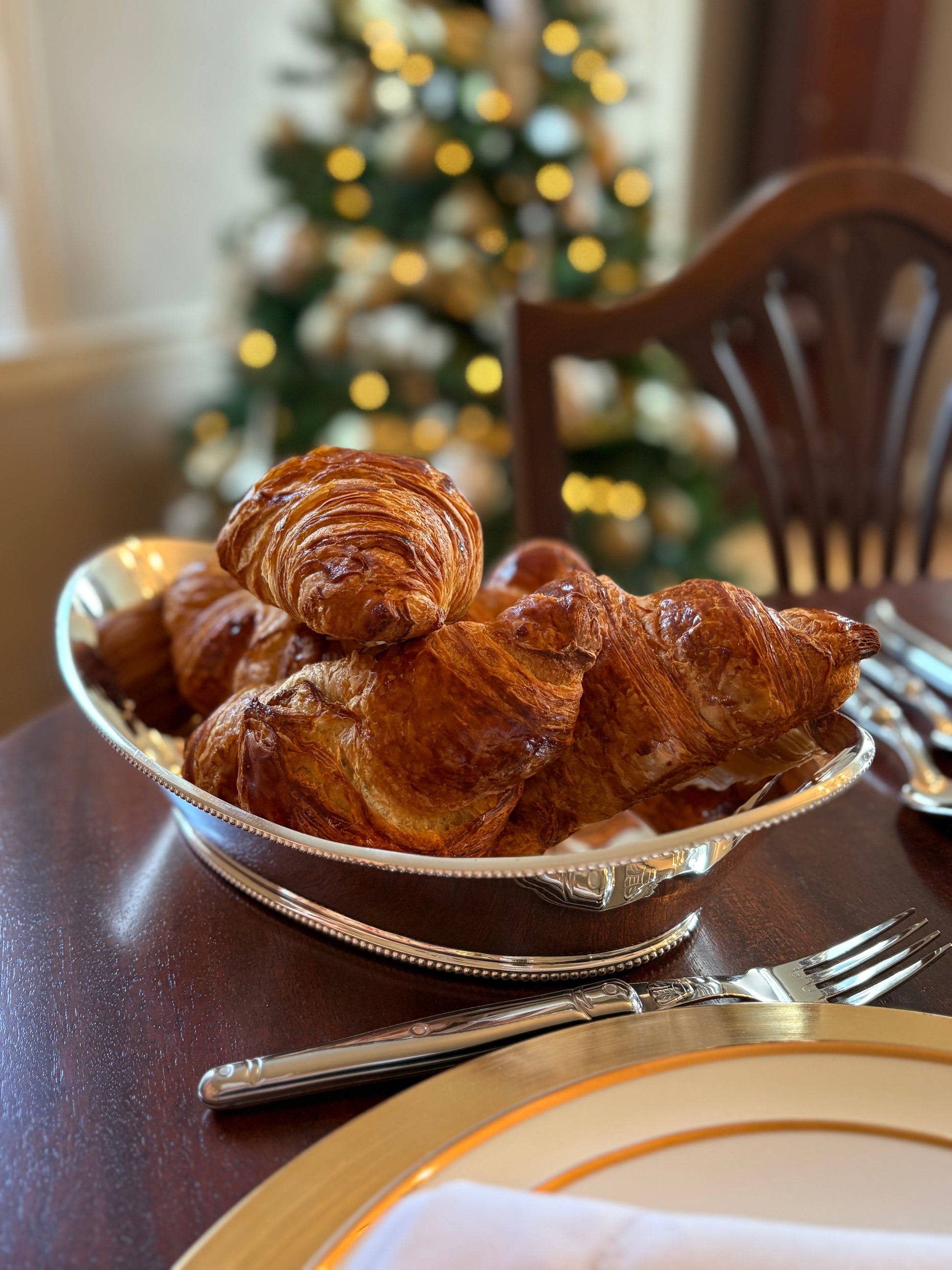 There’s a quiet romance to a table set with intention—the kind where the morning light catches on polished silver and a basket of just-baked croissants promises an unhurried brunch. This Vintage Hôtel Silver Beaded Rim Bread Basket carries that mood beautifully. Its soft gleam and graceful lines give even the most familiar pastries a sense of occasion.