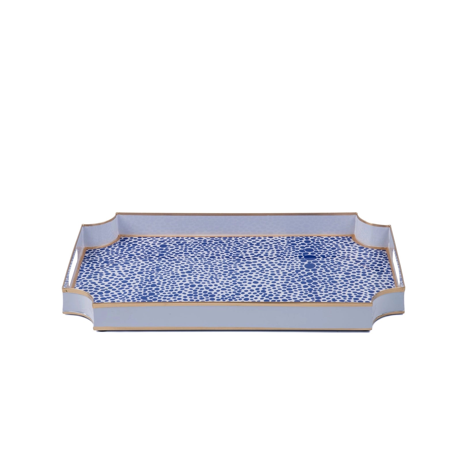 Refined with a touch of quiet charm, the Shagreen Enameled Jaye Tray brings effortless polish to any setting. Washed in a soft blue and finished with a delicately patterned enamel interior, it offers subtle texture and depth, beautifully framed by warm gold trim.