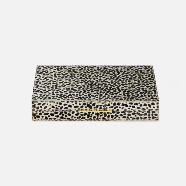 There are hundreds of ways to say luxury, and a backgammon set in cheetah print hair-on-hide is one of the best. Game pieces are horn and bone. 11.5"L x 7.5"W x 2"H.